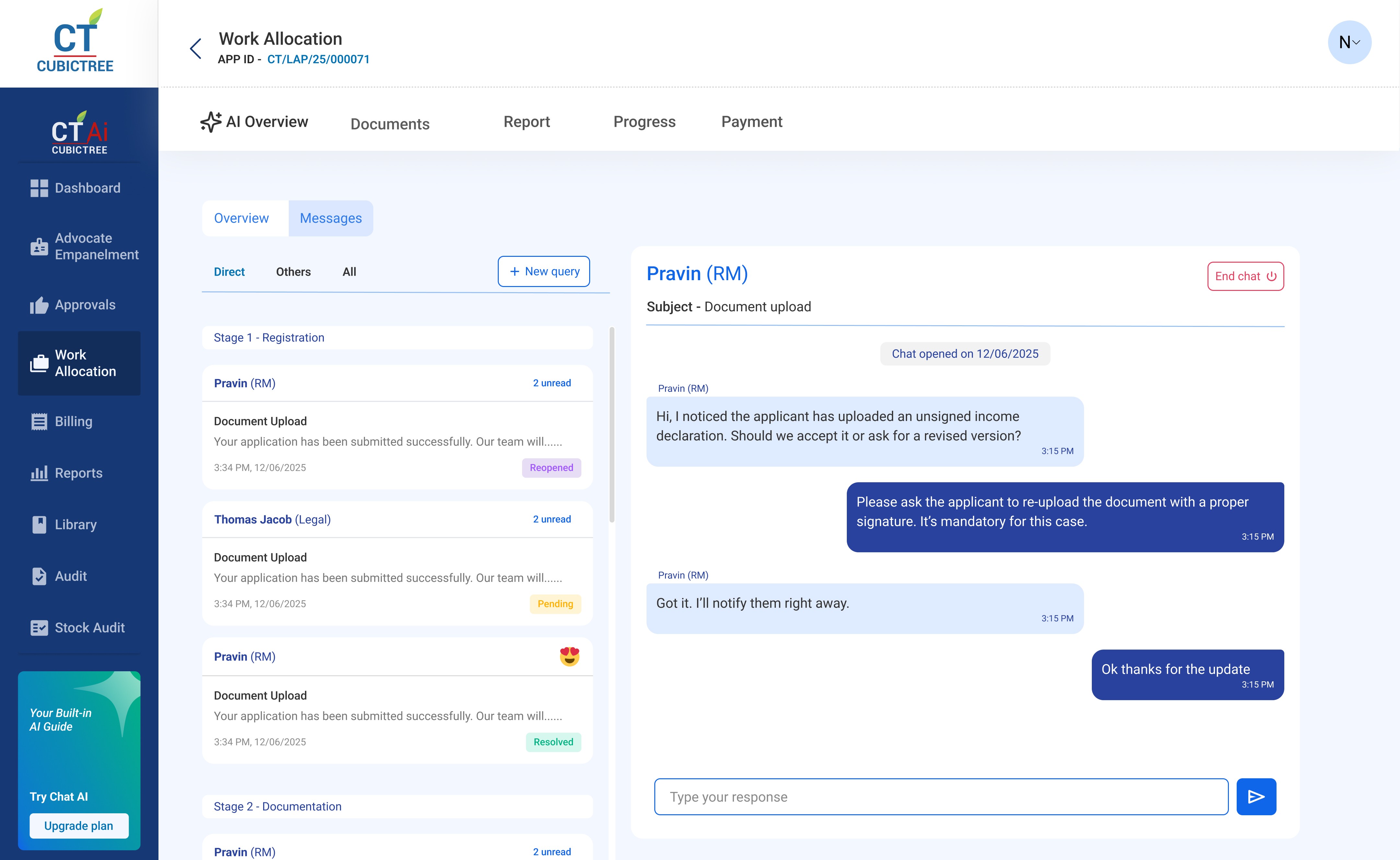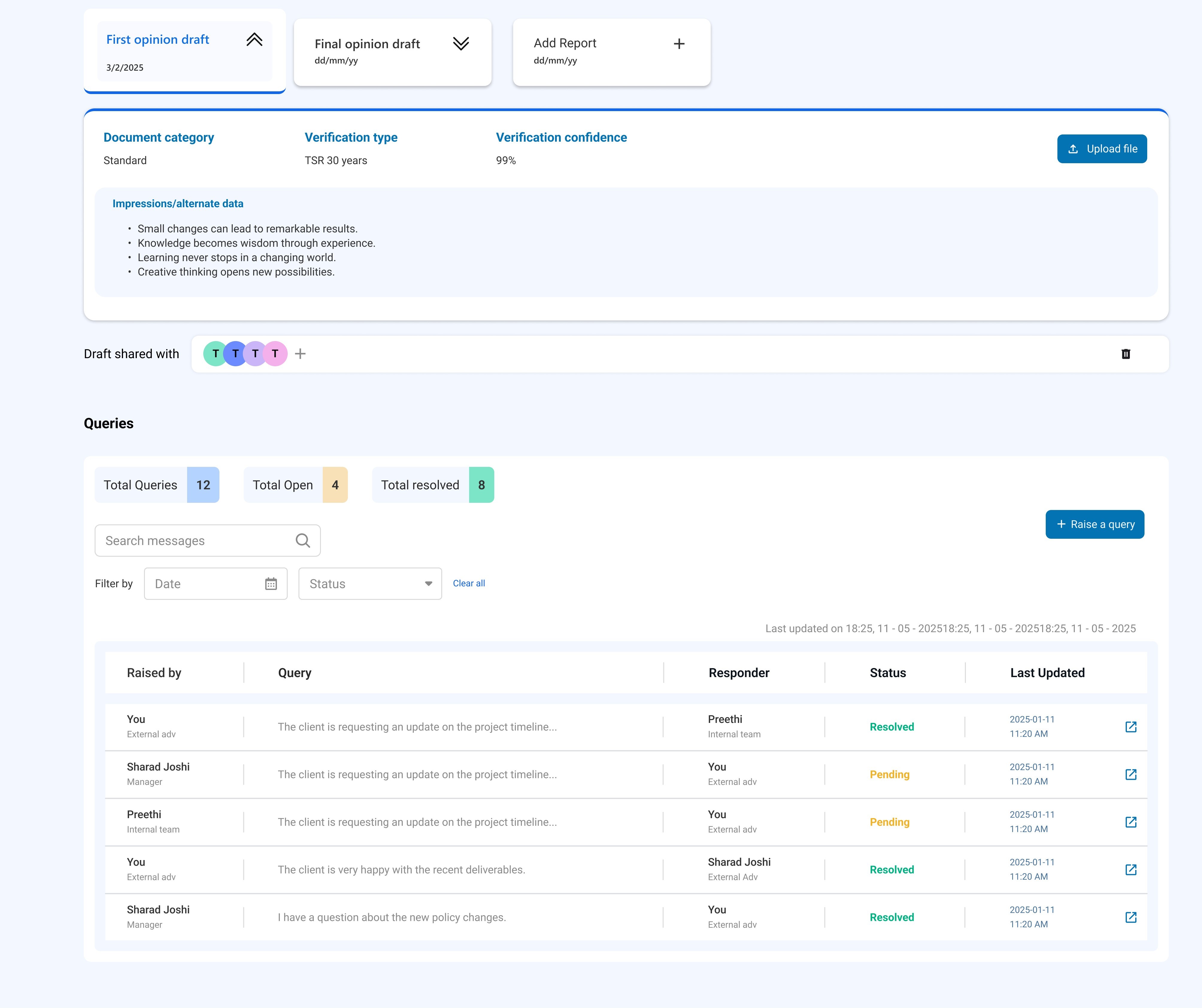 Advocates lacked a structured system for requisition lists, legal opinions, and query resolution